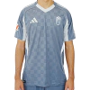 O manto será usado nas partidas da LALIGA Hypermotion (Segunda Divisão Espanhola) e na Copa do Rei da Espanha. O design traz a gola redonda em vermelho, acompanhada pelas mangas também vermelhas, enquanto as laterais ganham painéis mesclando branco e vermelho. No peito, o escudo oficial do Granada CF aparece lado a lado com o logo da Adidas em branco, reforçando a tradição e modernidade do uniforme. Nas costas, o patrocínio LOWI é aplicado, completando o visual da temporada.